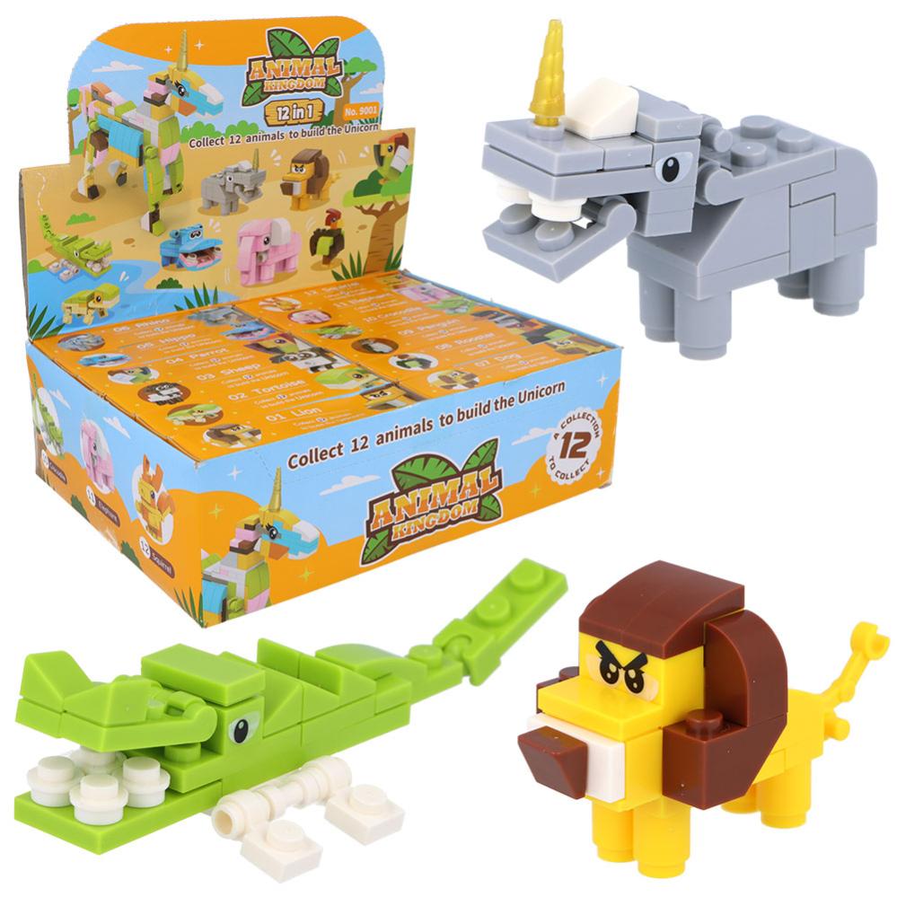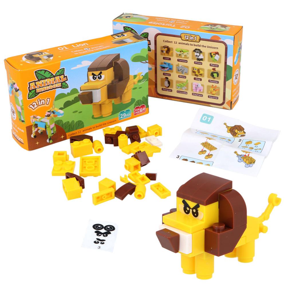 3D-Byggesæt Dyreriget omfatter et sæt med 12 legobyggesæt til at bygge tolv forskellige dyr, for eksempel et egern, en hund, en pingvin, en løve, en krokodille, en elefant og en skildpadde. Saml alle tolv dyr, så kan du bygge en stor, farverig enhjørning af dem. Byggesættene sælges i tolv forskellige varianter, men de sælges usorterede og stykvis, så det bliver en overraskelse, hvilket dyr du får. Byggevejledninger til hvert enkelt dyr samt til den store enhjørning findes i pakken.
