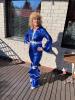 70'er Dancing Queen Kostume inkluderer en helt dækkende blå jumpsuit med udsvingede ærmer samt matchende ben, der består af tre dele oven på hinanden. Derudover medfølger et bælte med sølvstjerner og sølvfarvet snøring foran.
