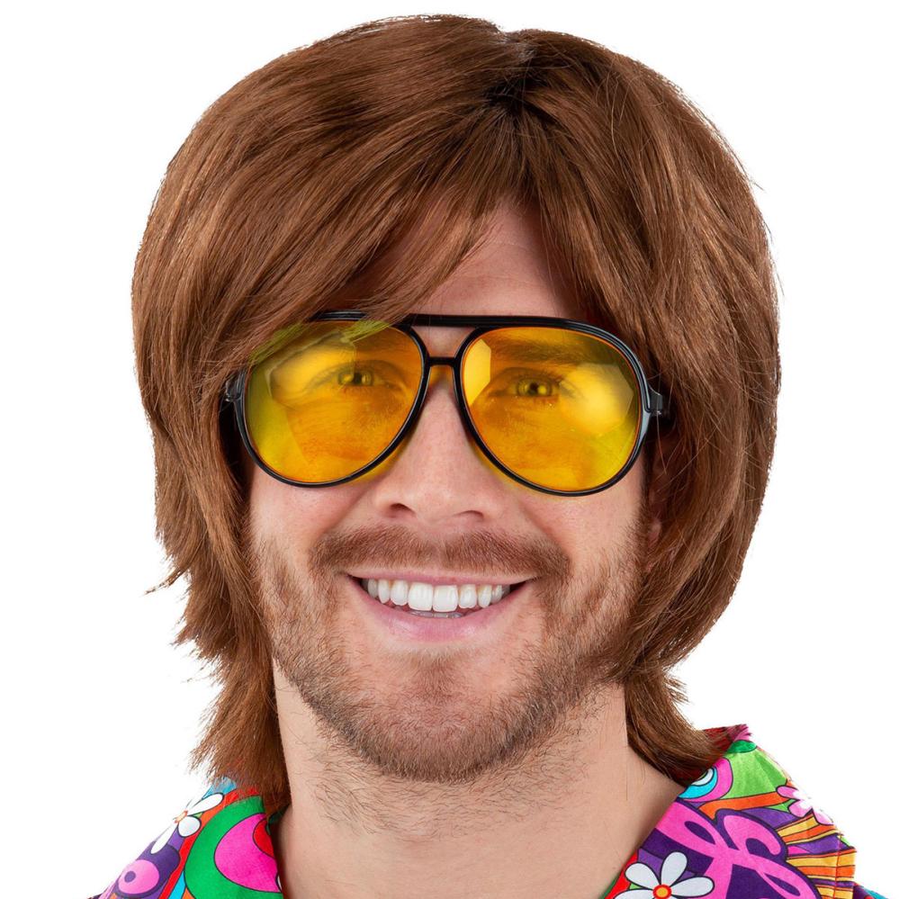 Giv dit outfit attitude med disse retro briller i klassisk pilotstil. Perfekte til en 70'er temafest hvor pilotbriller med sort stel og gule linser gør dig til aftenens blikfang.
