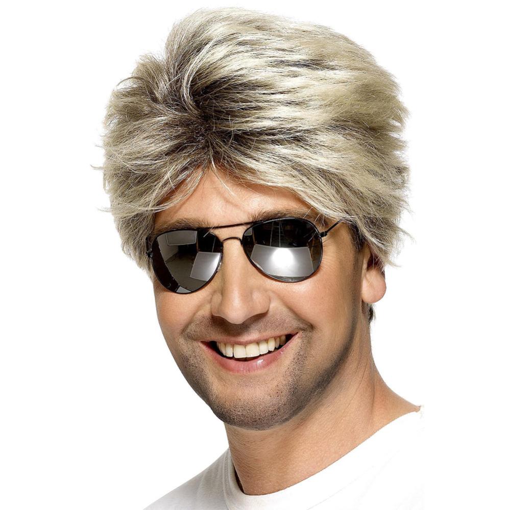 Gør entré til næste 80'er fest med en kort blond paryk, der skriger retrostil. Denne 80'er festtema paryk med solblegede spidser og mørk bund er en perfekt udklædningsparyk til nostalgisk festglans.