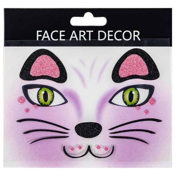 Ansigtsklistermærker Kat indeholder tyve ansigtsklistermærker med sort og pink glitter, der får ansigtet til at se ud som en kat.