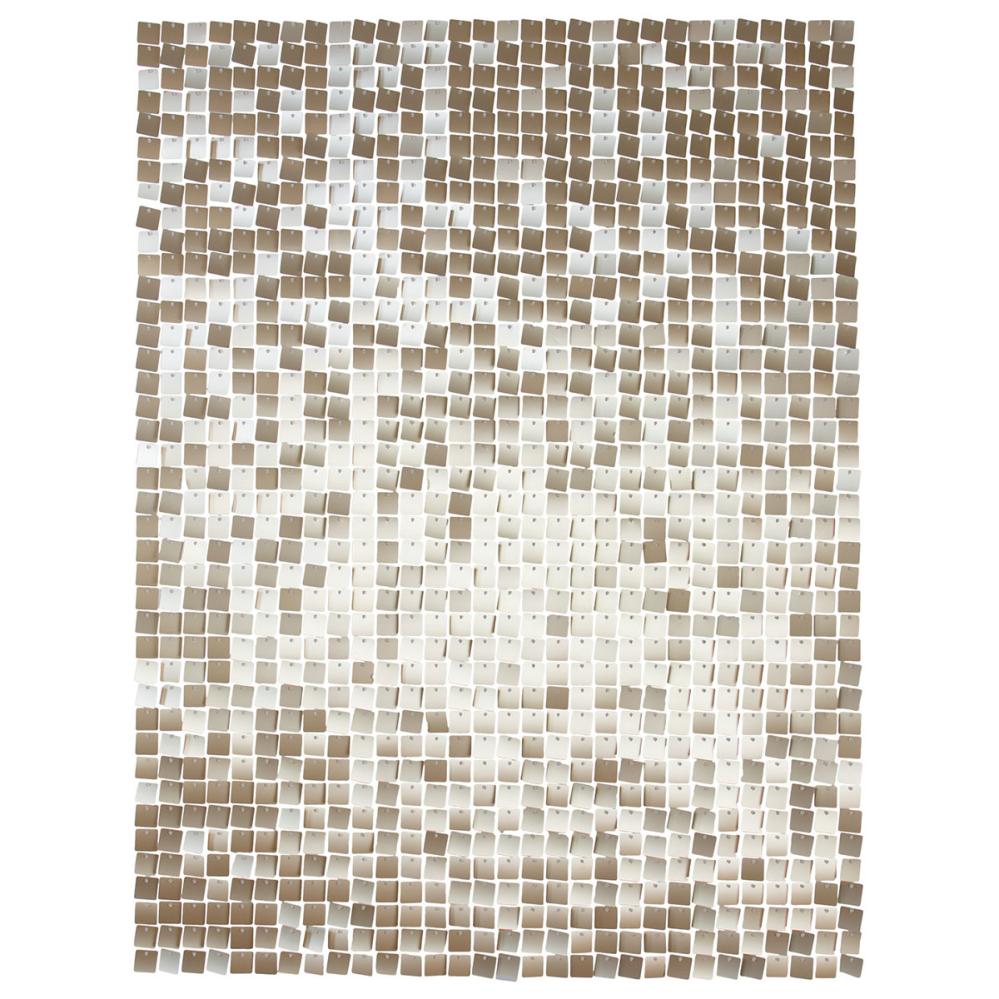 Backdrop Pailletpanel Starlight Gold 30x30 cm 12-pak omfatter et sæt med tolv paneler, som har små guldfarvede kvadrater. Pailletpanelerne har clips på siderne, som gør, at de firkantede paneler kan sættes sammen til en sammenhængende enhed.