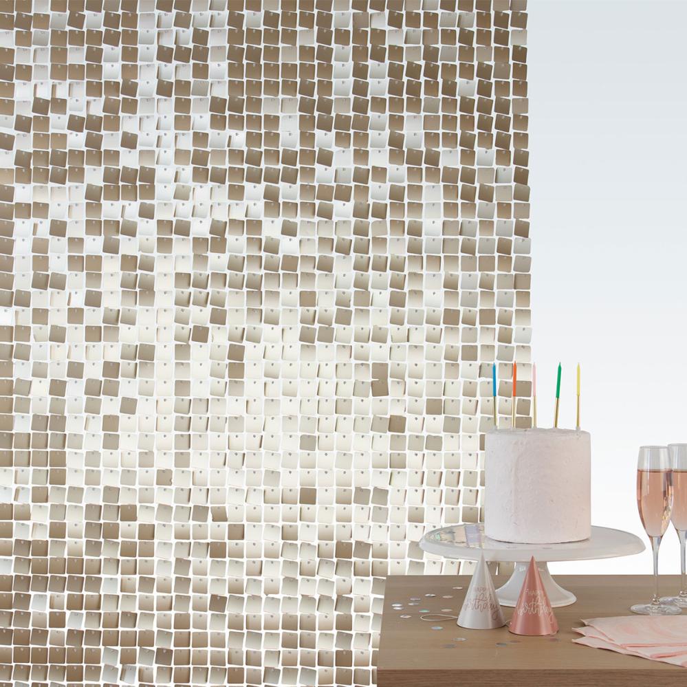 Skab en glamourøs festdekoration og baggrund med Backdrop Pailletpanel Starlight Gold 30x30 cm 12-pak. De tolv panelers guldpailletter giver en glitrende effekt, perfekt som festdekoration eller backdropdekoration til alle typer af arrangementer.