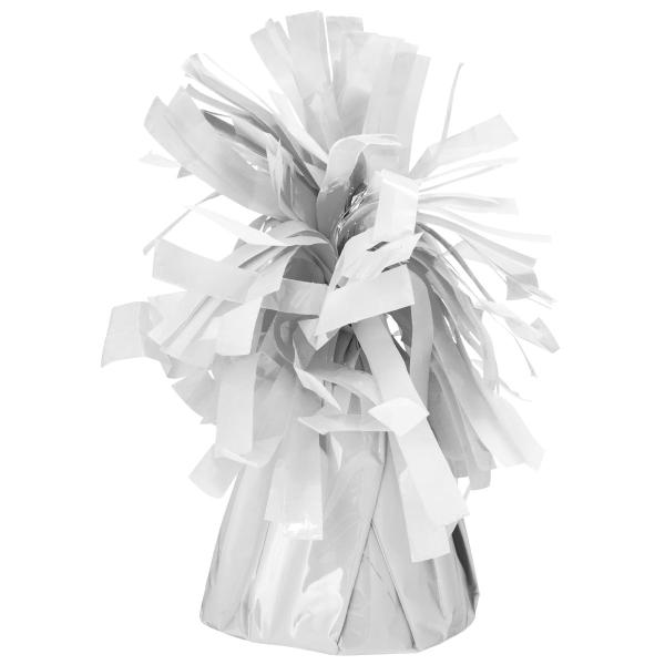 Ballonvægt Hvid er en vægt til balloner som er pakket ind i hvid pastelfolie og har en løkke øverst til at fastgøre heliumballoner med ballonsnore.
