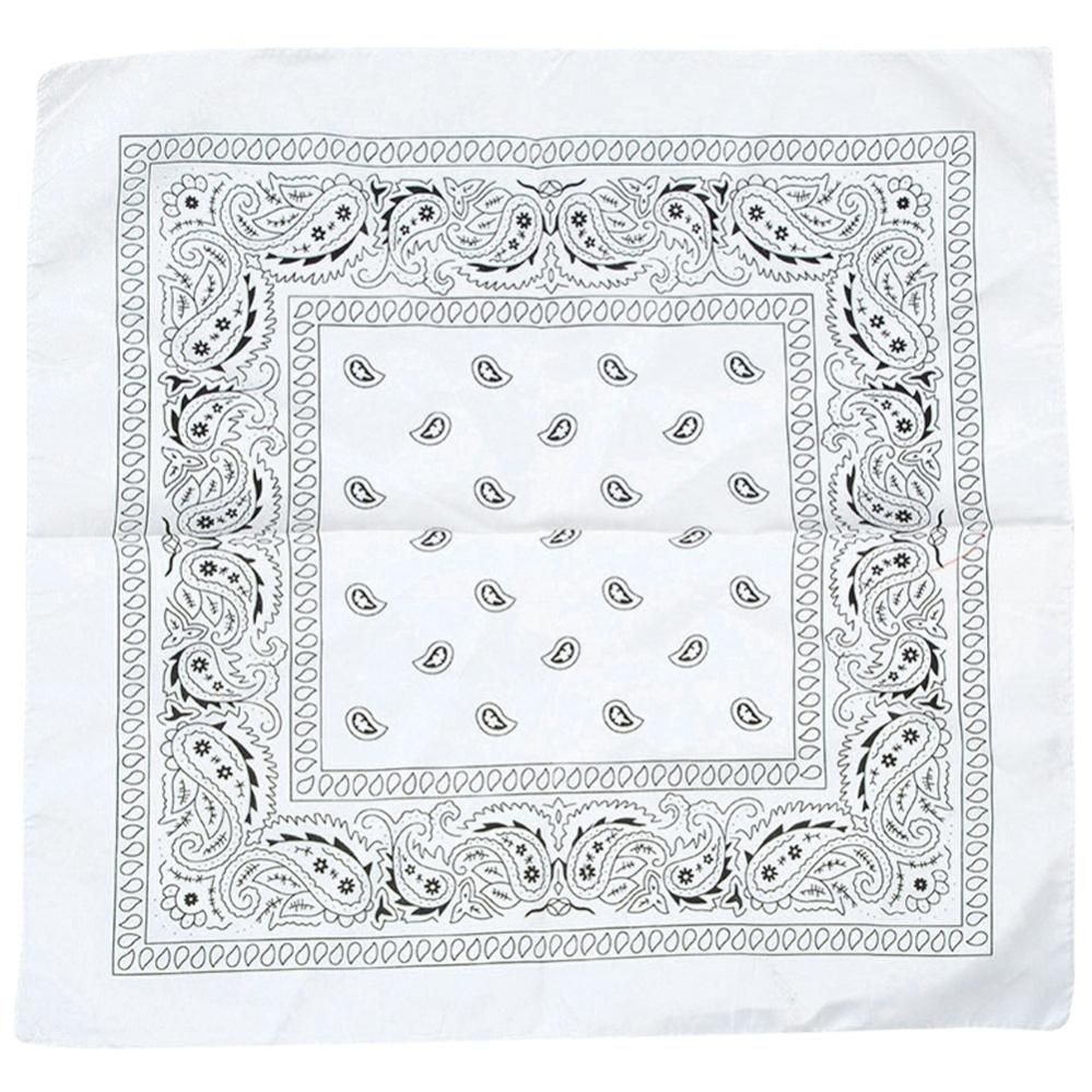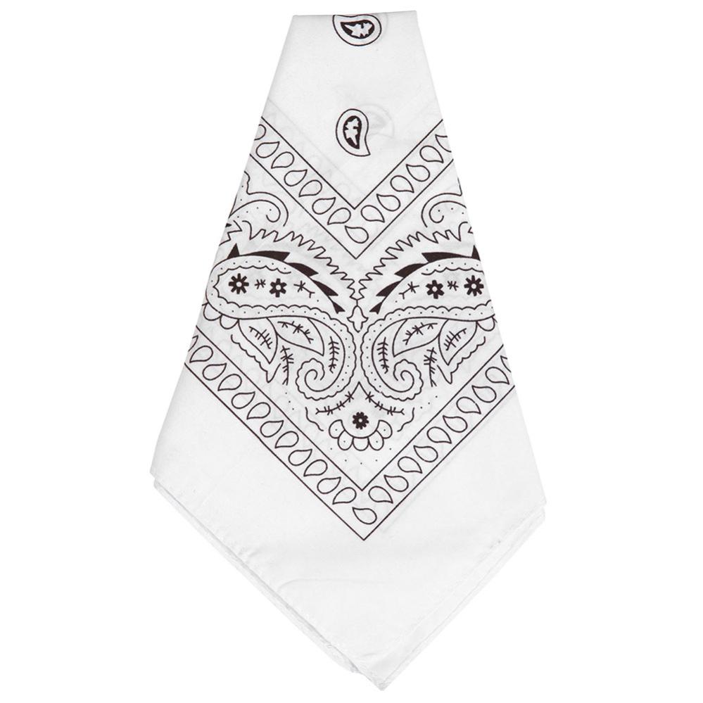 Giv din stil et trendy touch med denne hvide bandana som har et klassisk sort mønster og passer perfekt både til afslappede og edgy outfits. Brug den i håret, rundt om halsen eller som en smart accessory til for eksempel pirat- eller cowboy maskeraden.