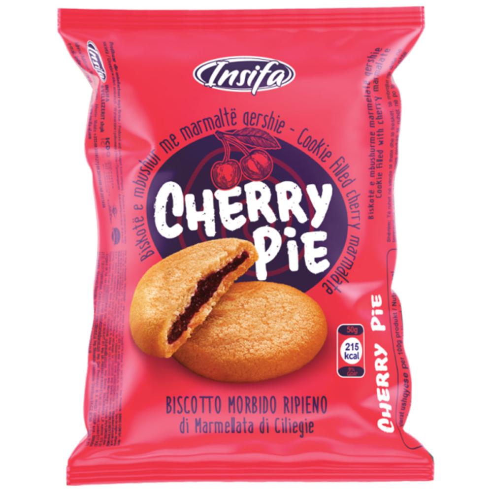 Blød Kage med Kirsebærmarmelade 50g består af en rund, flad og blød kage med en herlig fyldning af kirsebærmarmelade.