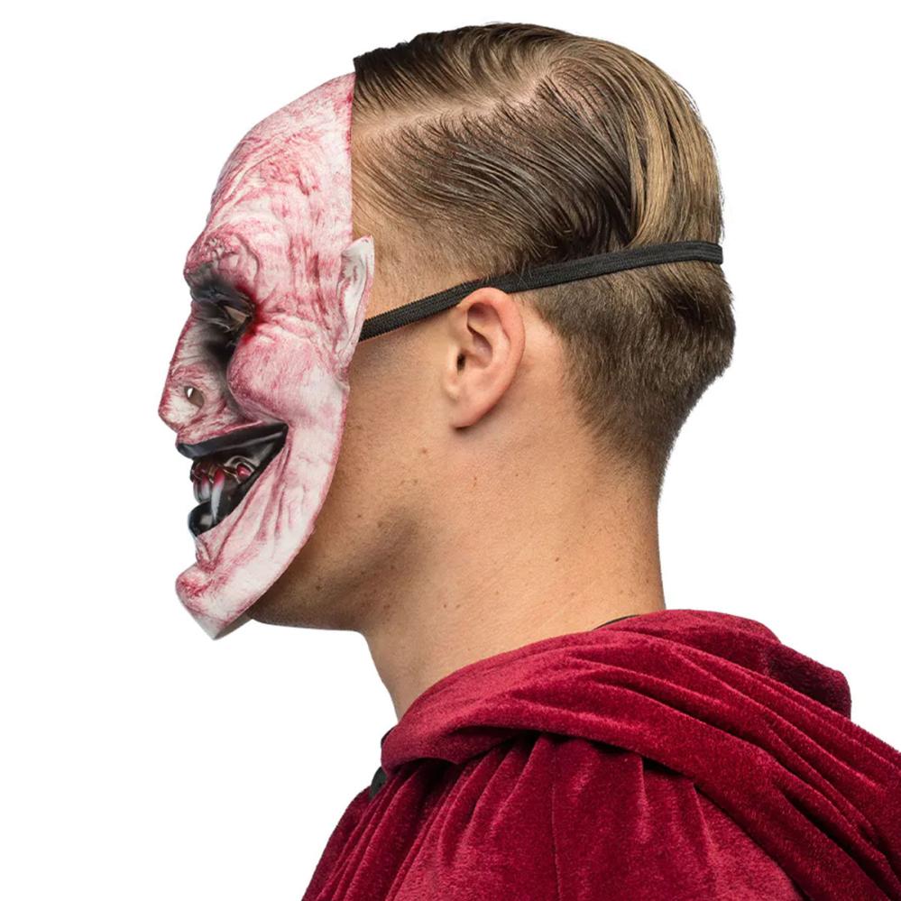 Denne vampyrmaske er let at bære længe og kan rengøres forsigtigt efter brug. Til halloween passer en vampyrmaske godt og sætter tonen til maskerade. Kombiner gerne med mørkt tøj for en sammenhængende udklædning.