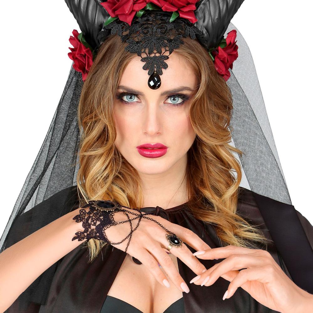Dette blondearmbånd har justerbar kæde og lav vægt for behagelig brug under hele aftenen. Til udklædningsfest til halloween passer et armbånd med ring, som kompletterer udklædningen på en enkel måde.
