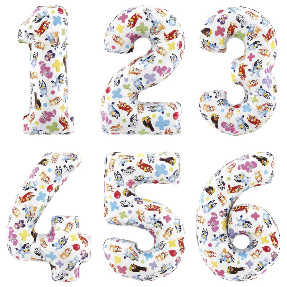 Gør festen ekstra festlig med en folieballon i form af et tal dekoreret med motiver fra Bluey. En perfekt ballon til en Bluey temafest hvor børne-balloner der forestiller tal skaber en herlig stemning. Kombiner med flere talballoner for en komplet dekoration af balloner.