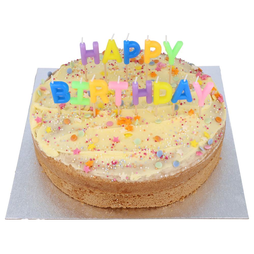 Info om Bogstav Lys Happy Birthday Flerfarvet: