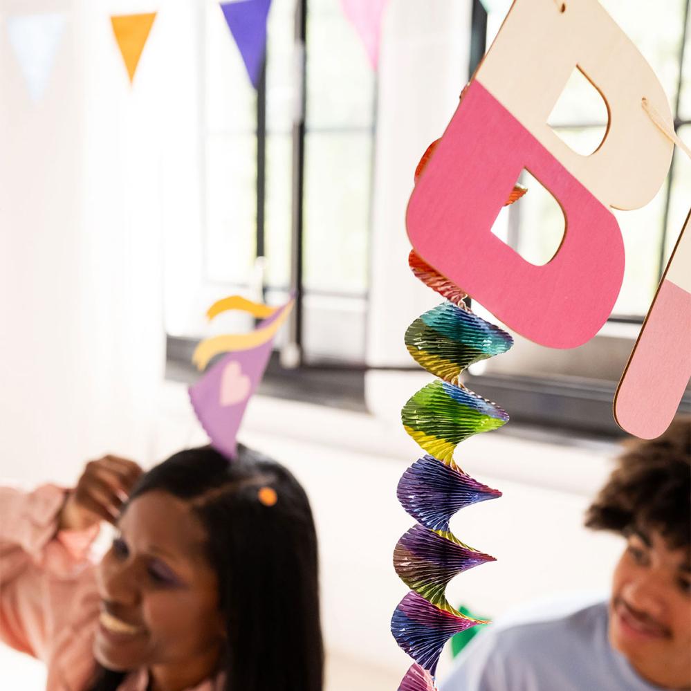 Fejr med stil med en happy birthday guirlande i træ, som løfter enhver fest. Denne farverige fødselsdagsguirlande er en perfekt hængende dekoration til festen og et charmerende indslag blandt dine festdekorationer.