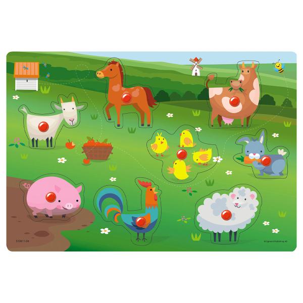 Underholdende børnepuslespil med et fint motiv af en bondegård og søde bondegårdsdyr. Et dekorativt og rigtig sjovt knoppuslespil i træ af høj kvalitet med otte forskellige brikker, som barnet kan prøve at sætte på den rigtige plads. Det perfekte valg for dig, der er på udkig efter et sjovt træpuslespil til de aller mindste.