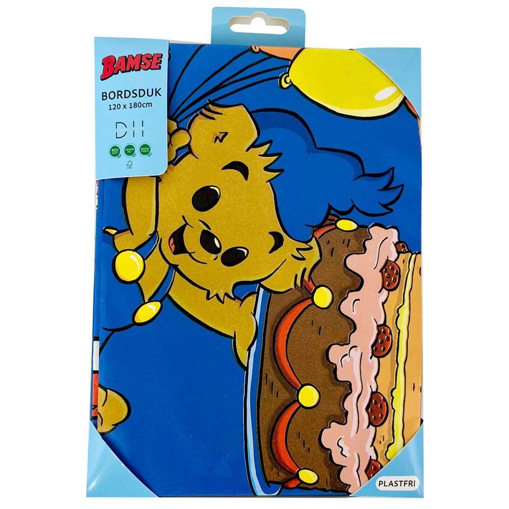Festartikler til en borddækning med et tema hvor figuren Bamse er på en borddug gør enhver fest ekstra festlig. Til en børnefødselsdag giver denne borddug med Bamse-tema en farverig atmosfære. Denne festdug som har Bamse som motiv passer perfekt til en Bamse-fest.