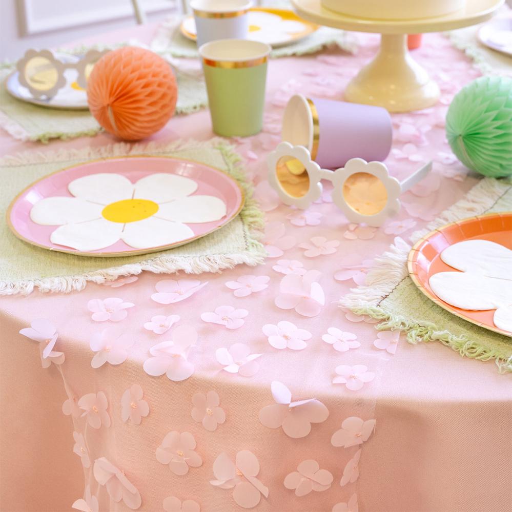 Uanset om det er midsommer eller bryllup skaber en blomstret hvid løber en festlig stemning ved borddækningen. Ved et bryllup passer en tynd hvid bordløber med net og blomster udmærket til din borddækning.