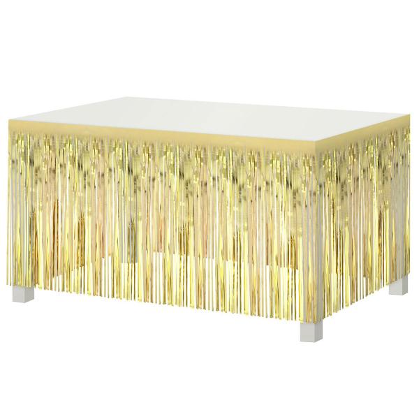 Bordskørt Frynser Lys Guld er et bordskørt med skinnende frynser i lys guld.