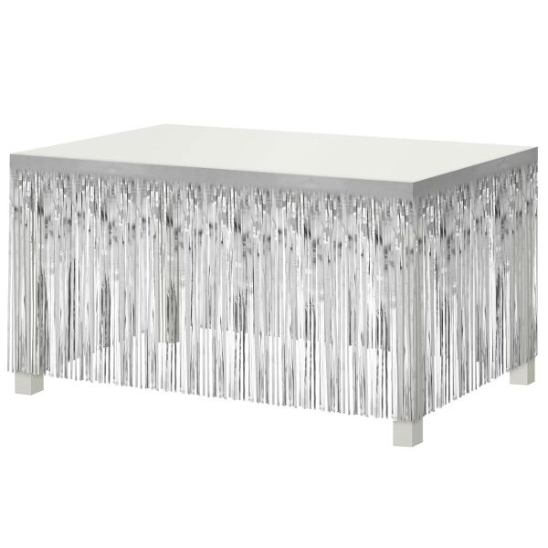 Bordskørt Frynser Sølv er et bordskørt med sølvfarvede frynser.