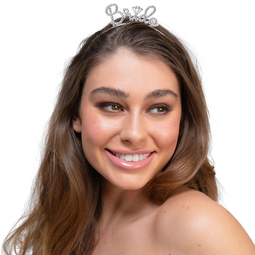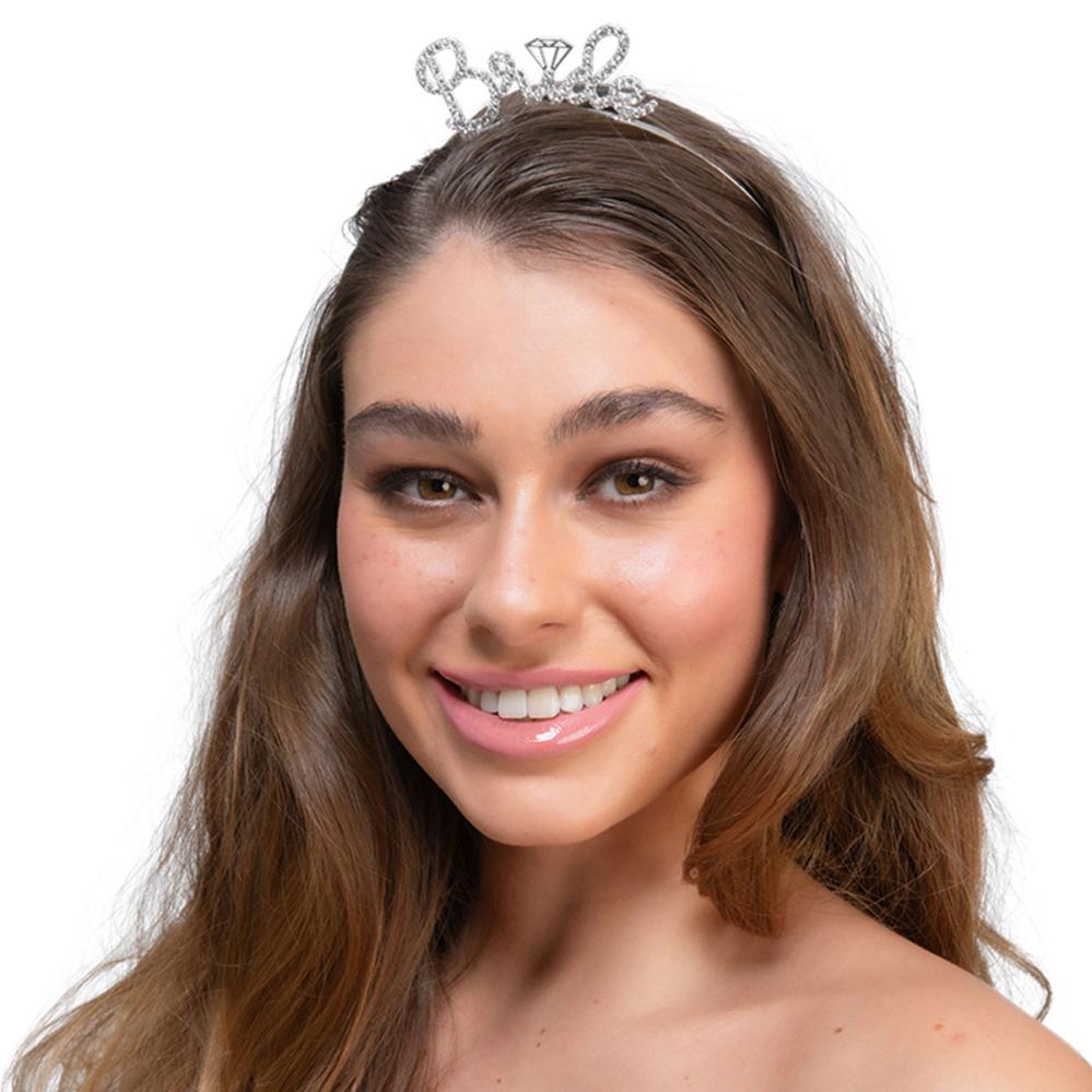 Sæt stil på festen med en bride hårbøjle, der glimter i sølv med sine gnistrende plastdiamanter. Perfekt som tilbehør til polterabend og et must blandt accessories til den kommende bruds udklædning.