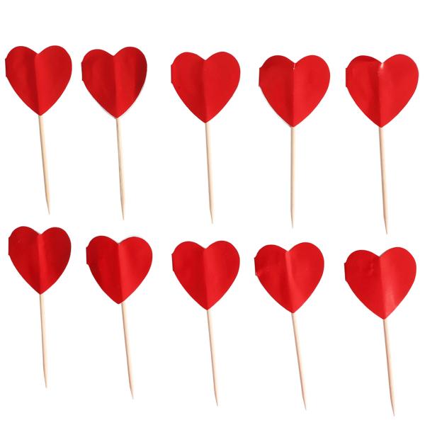 Cake Picks Røde Hjerter 10-pak