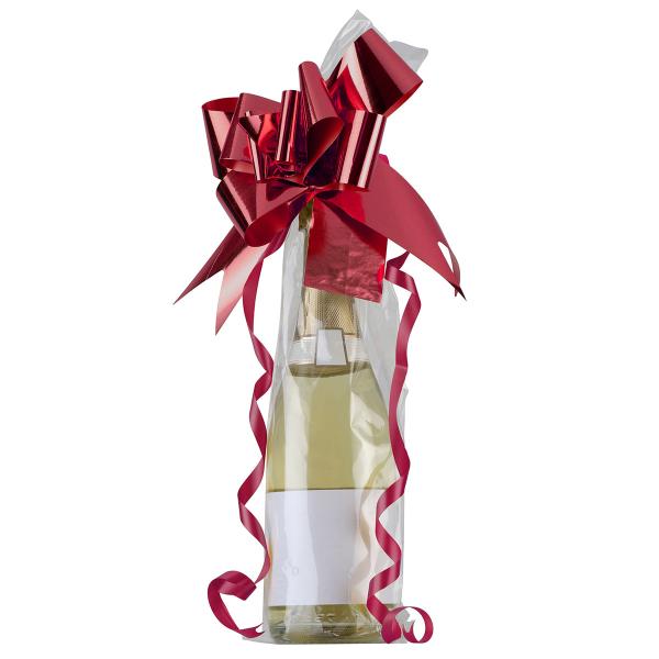 Flaskeposen holder flasken på plads under transport og gør overleveringen smidig ved middage, fødselsdage og højtider. I en cellofanpose fremstår gaven tydeligt, og den røde, pyntelige sløjfe bindes let for en ren og pæn afslutning.