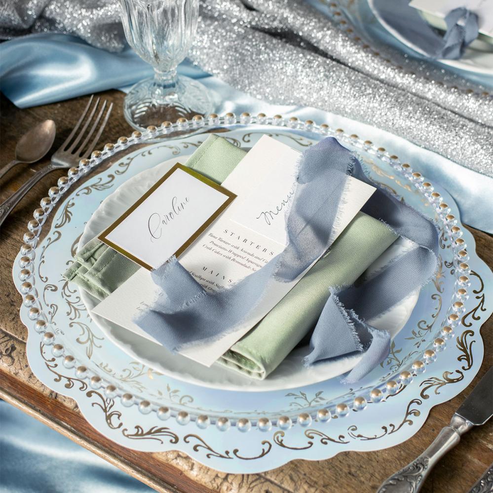 Når et blåt bånd på rulle bruges som dekoration til en babyshower eller en fest, giver det både et smukt og kreativt udtryk. Et dekorationsbånd passer lige godt til mange lejligheder. Dette chiffonbånd har en luftig og blød fornemmelse.
