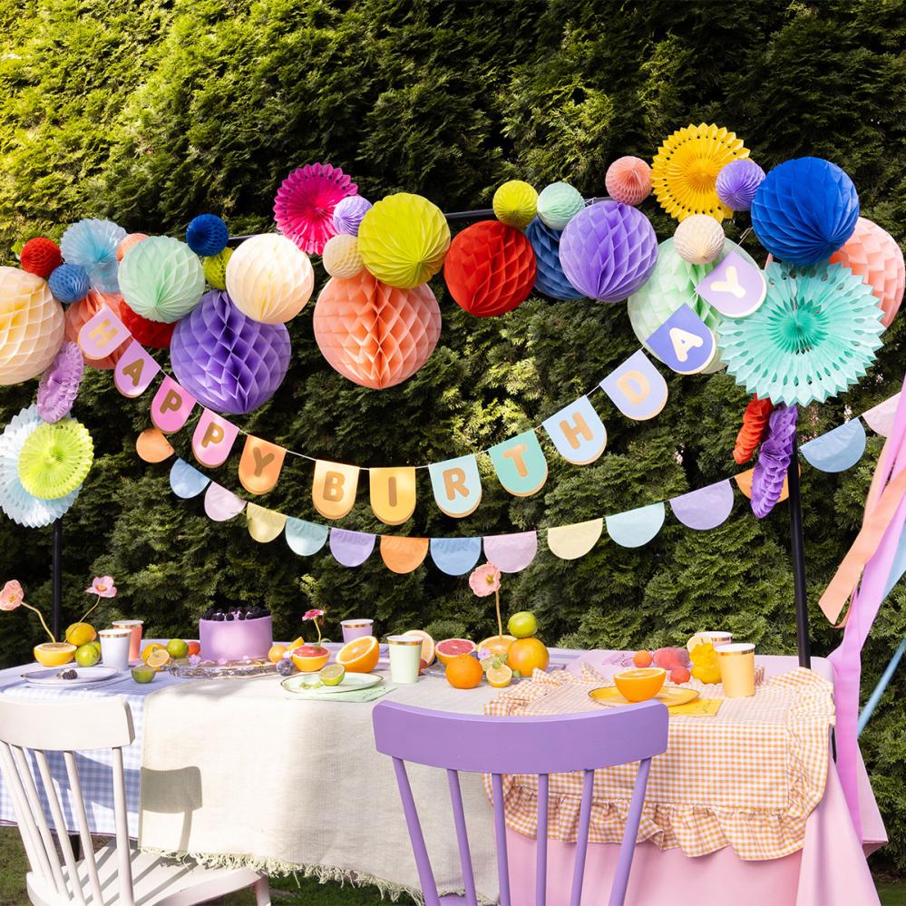 Crepepapir Pastel Farvemix 6-pak indeholder seks crepepapirer på rulle i pastelfarverne blå, lilla, orange, grøn, lyserød og gul.