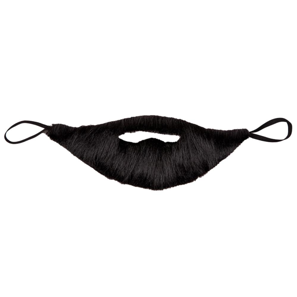 Deluxe Skæg Sort omfatter et sort skæg, som holdes på plads med et sort elastisk bånd.