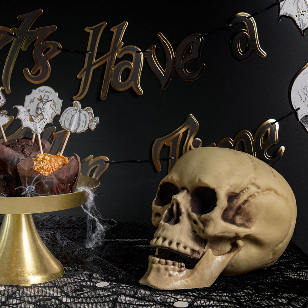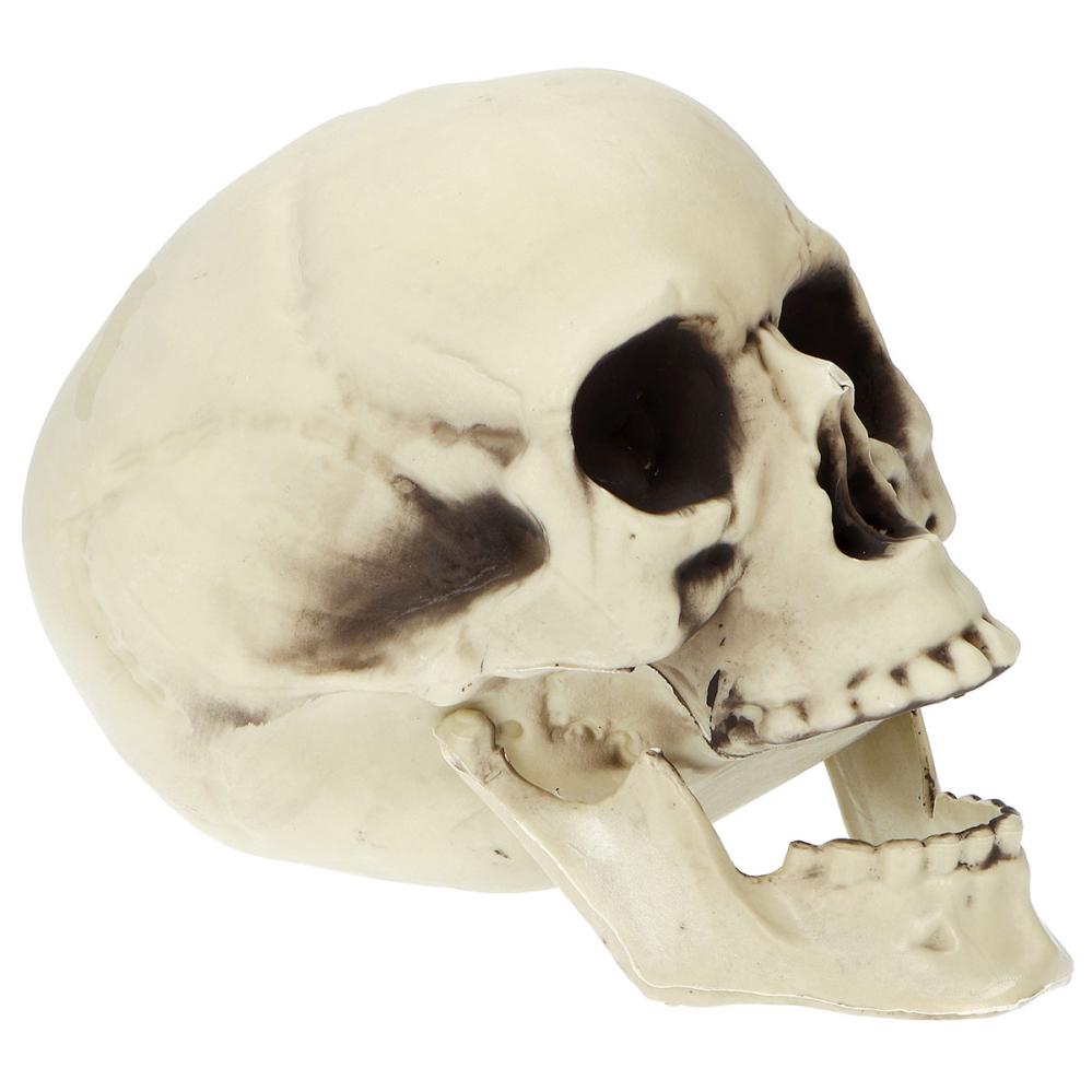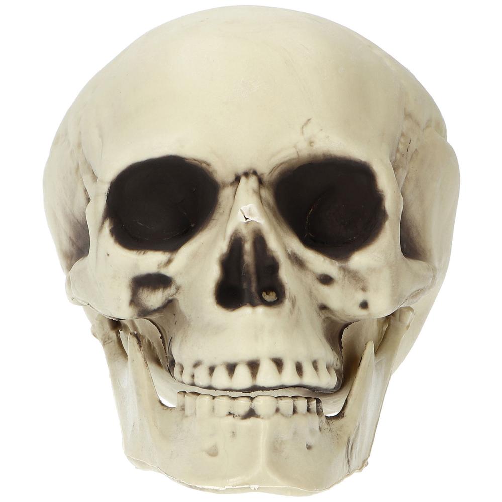 Sæt stemningen til din Halloween temafest med en realistisk dødningehoved dekoration. Dette skræmmende dødningehoved i plast har detaljer, der imponerer og skaber en uhyggelig effekt blandt gæsterne.