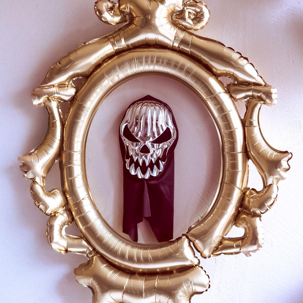 Info om Dødningehoved Helmaske Sølv/Sort: