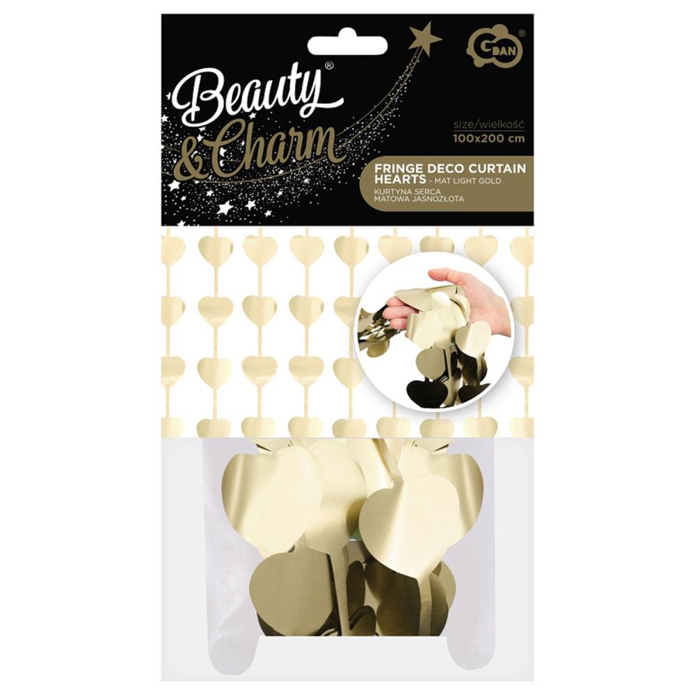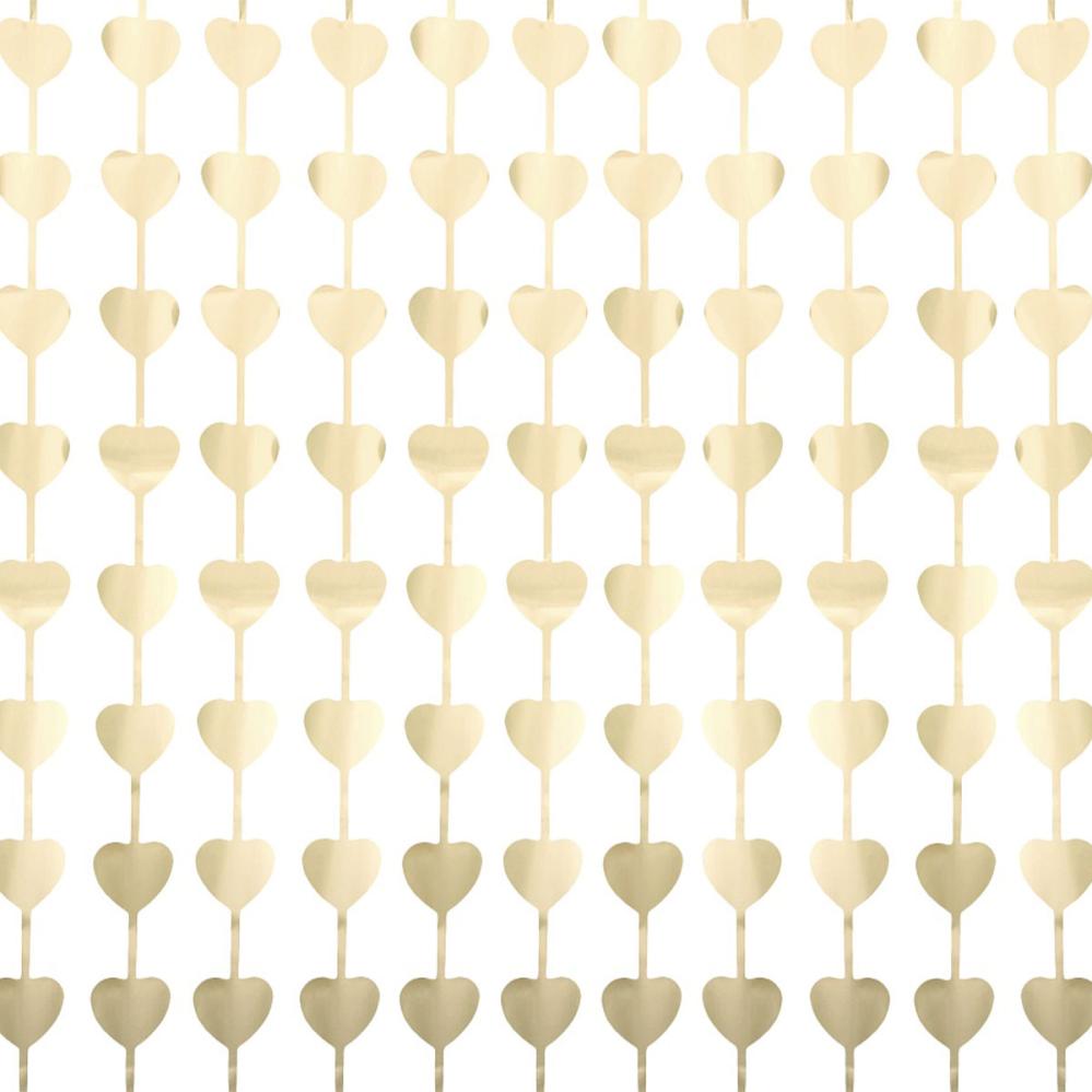 Dørforhæng Hjerter Mat Lysguld er et dørforhæng med hængende hjerter i mat lysguld.