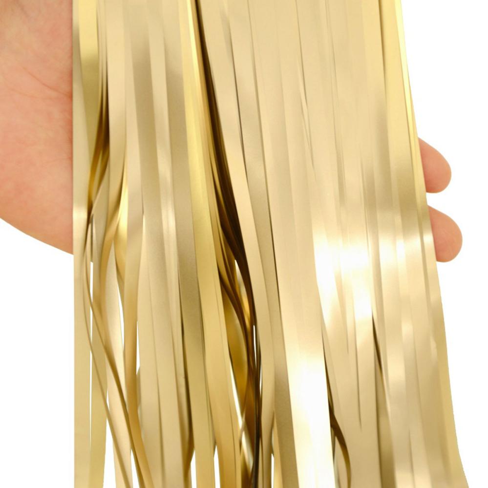 Dørforhæng Mat Lys Guld omfatter et dørforhæng med lange og tynde strimler i mat lys guld.