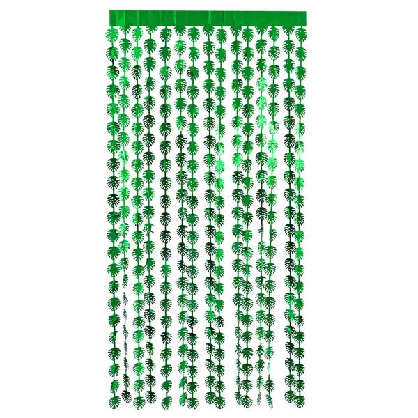Dørforhæng Palmeblade Metallic Grøn omfatter et dørforhæng med hængende palmeblade i metallic grøn.