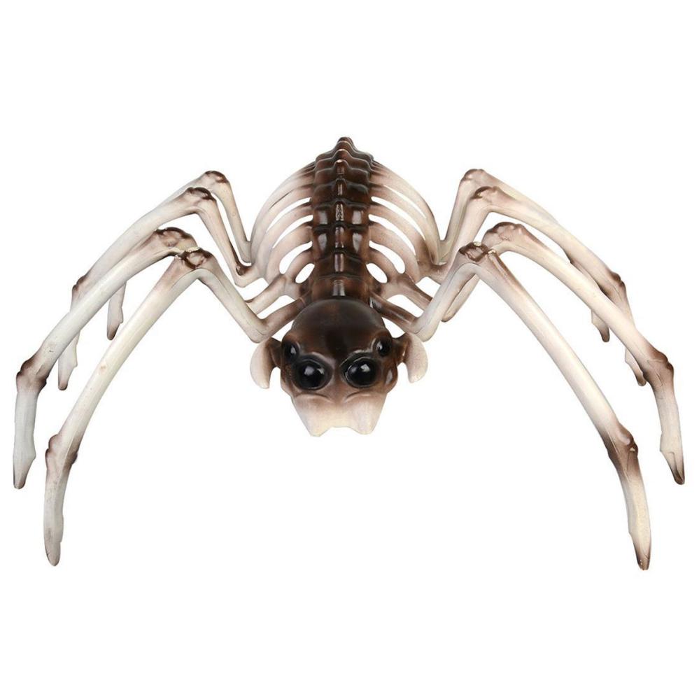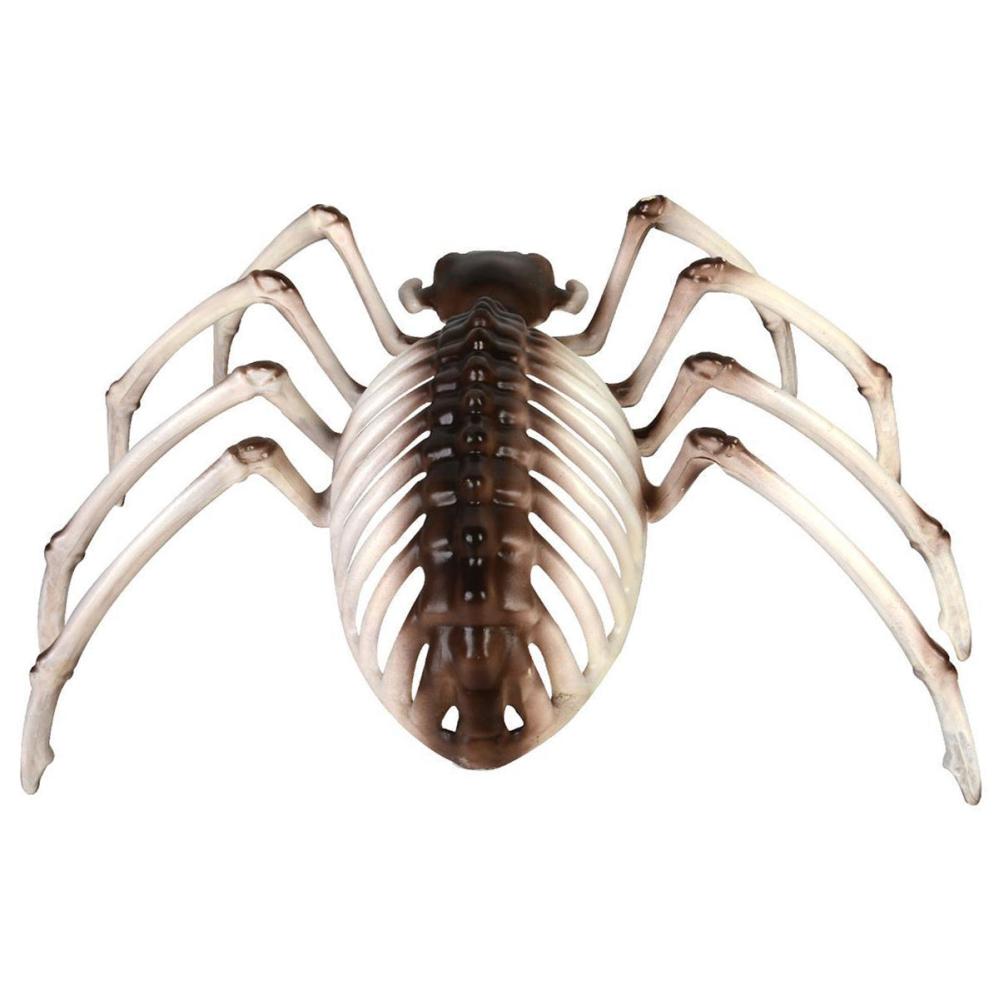 Edderkopskelet Dekoration er en halloweendekoration i form af et stort hvidt edderkopskelet med brune og grå detaljer. Edderkoppens krop er lavet af plast og den har et latexhylster over hovedet. OBS! Dette er kun en dekoration og ikke legetøj.