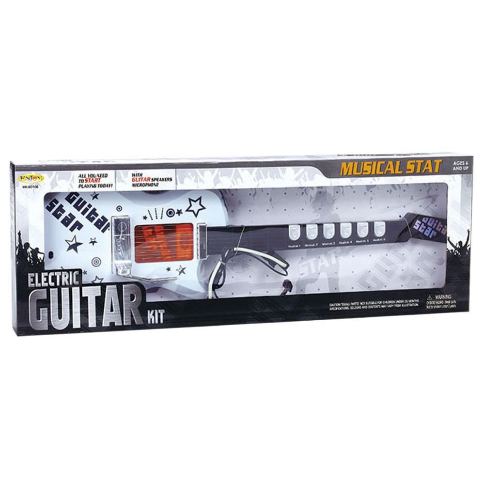Lad børnenes sceneshow begynde med denne sorte og hvide legetøjsguitar som lyser op med melodier og lyseffekter. En perfekt legetøjsguitar til små rockstjerner klar til at tage tonen!