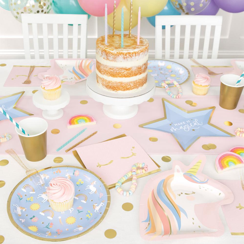Et enhjørningetema gør enhver fest eventyrlig, hvor enhjørningen stråler, og borddækningen føles komplet. Paptallerkener lader en enhjørning skinne i borddækningen med et tema, som børn elsker. Så glider festen. Når børnefødselsdag møder enhjørning, bliver stemningen sprudlende.
