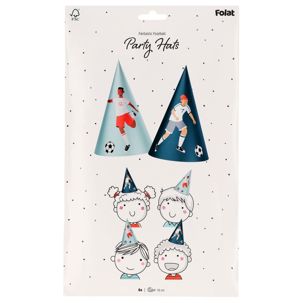 Gør festen komplet med disse festhatte med fodboldtema. Denne 6-pak indeholder to seje designs, som passer perfekt som tilbehør til fodboldfødselsdag. En enkel måde at pifte alle typer børnefødselsdage op på.