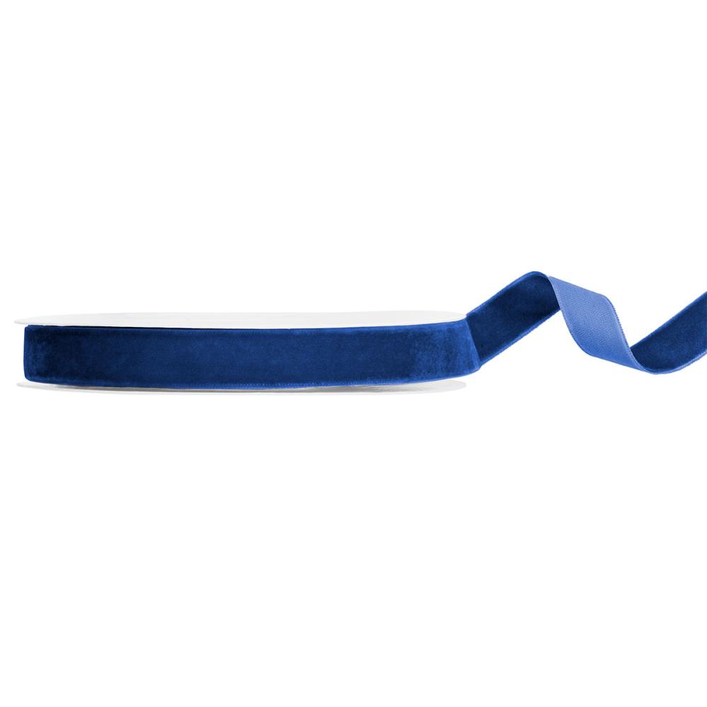 Fløjlsbånd Marineblå 15 mm omfatter et marineblåt fløjlsbånd på rulle.