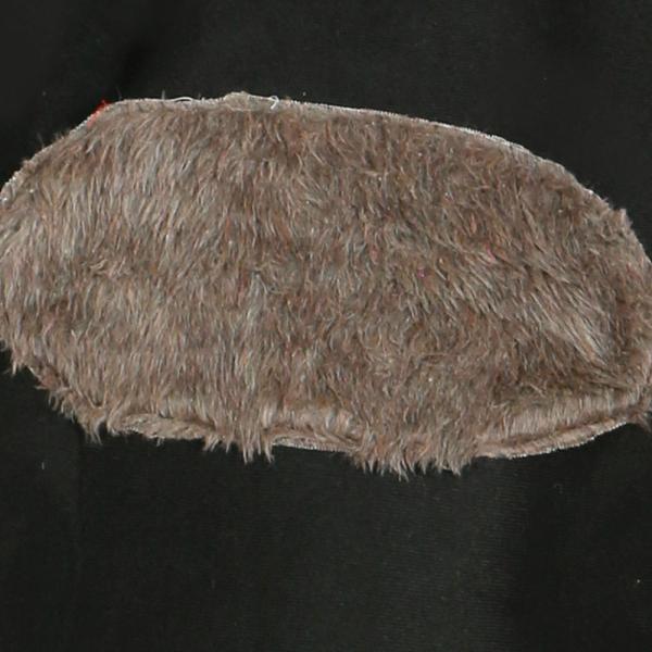 - En sort dragt i form af en flue med polstret front, sort hætte og gennemsigtige vinger