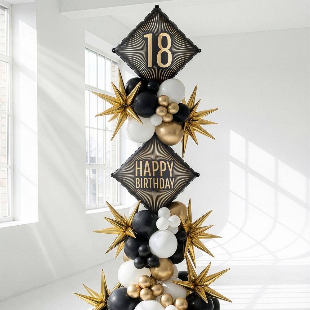 En fødselsdagsballon sætter straks tonen, og som folieballon, når 18 år fejres, bliver den et sjovt indslag for dig, der vil have en ballon til fødselsdag med ekstra stjerneglans. Til en 18 års fest er den en perfekt dekoration i sort og guld.
