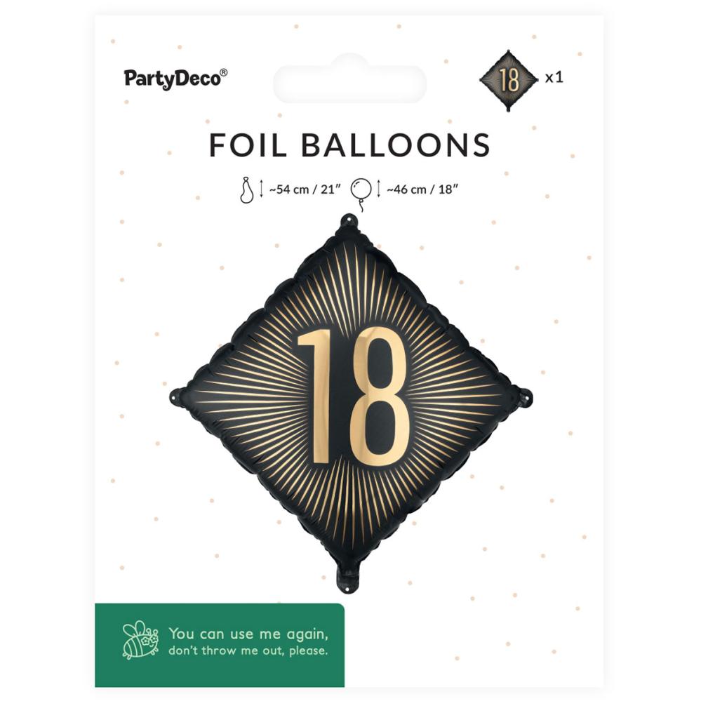 Info om Folieballon 18 Sort/Guld 46 cm: