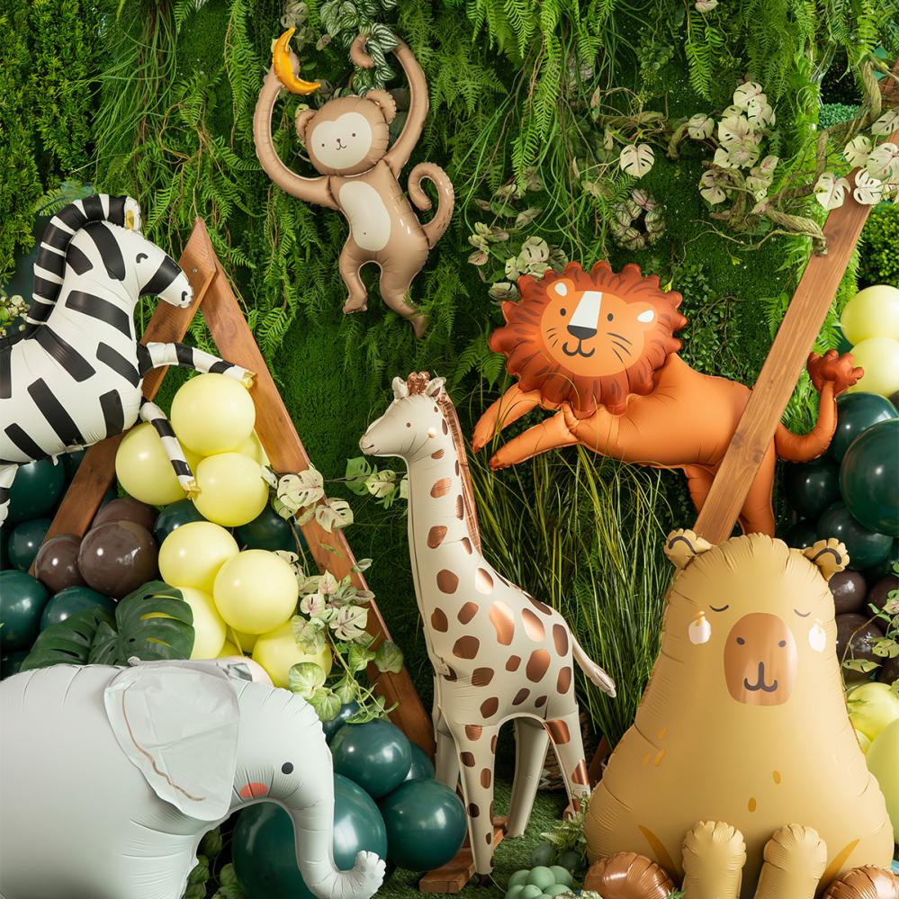 Til en fest med jungeltema bliver en ballon med abe hurtigt aftenens spasmager, og denne folieballon passer fint, når dyr er festens tema, især hvis en dyreballon allerede venter ved bordet. Den stjæler gerne et par grin, inden kagen overhovedet er kommet frem.