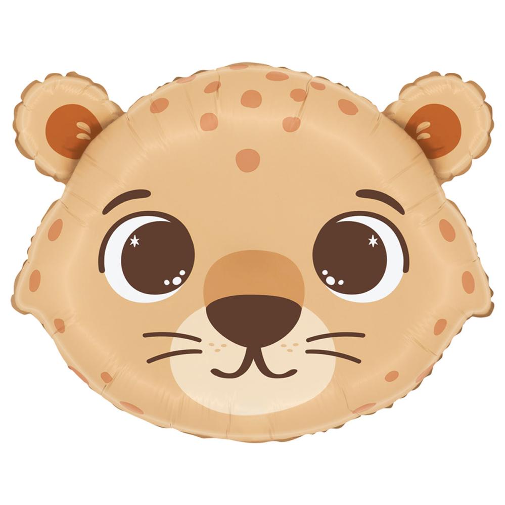 Folieballon Gepard 46x36 cm indeholder en folieballon formet som et sødt gepardansigt i bløde beige og brune nuancer.