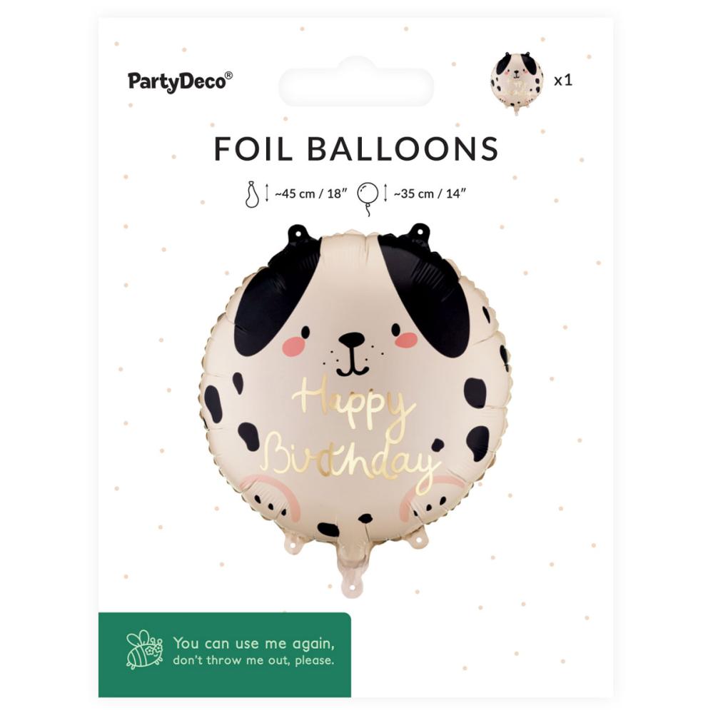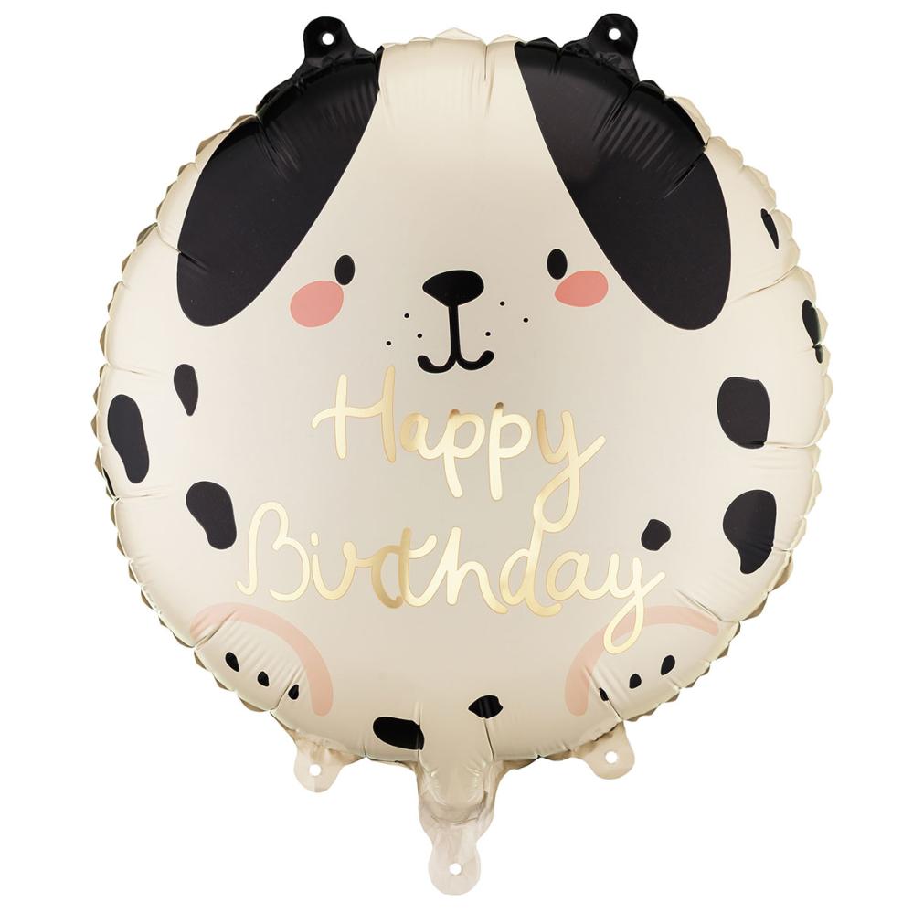 - Rund fødselsdagsballon med hundemotiv