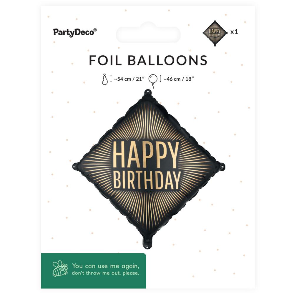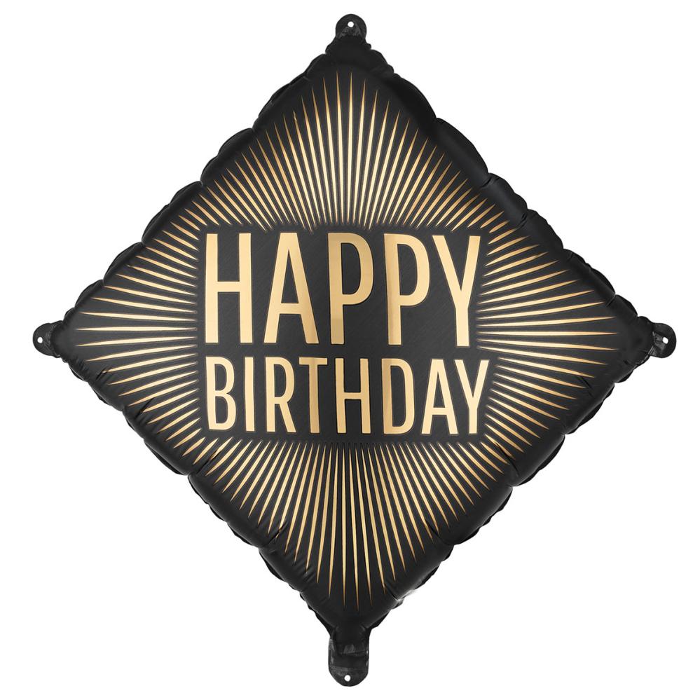 Folieballon Happy Birthday Sort/Guld 46 cm