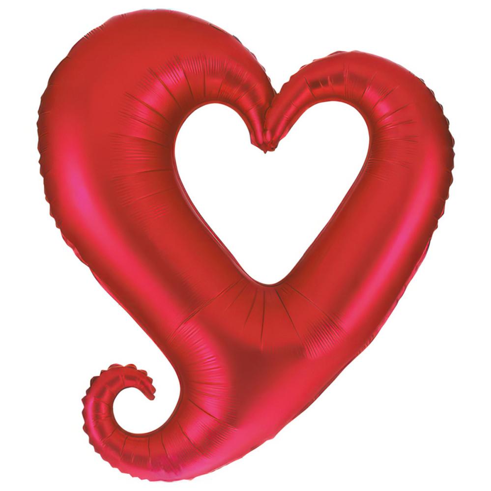 Folieballon Hult Hjerte Rød omfatter en rød folieballon med et hjerteformet design, hvor enderne mødes foroven og danner et hult hjerte. OBS! Denne ballon svæver ikke med helium.