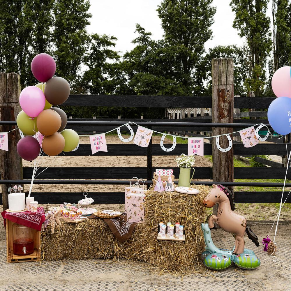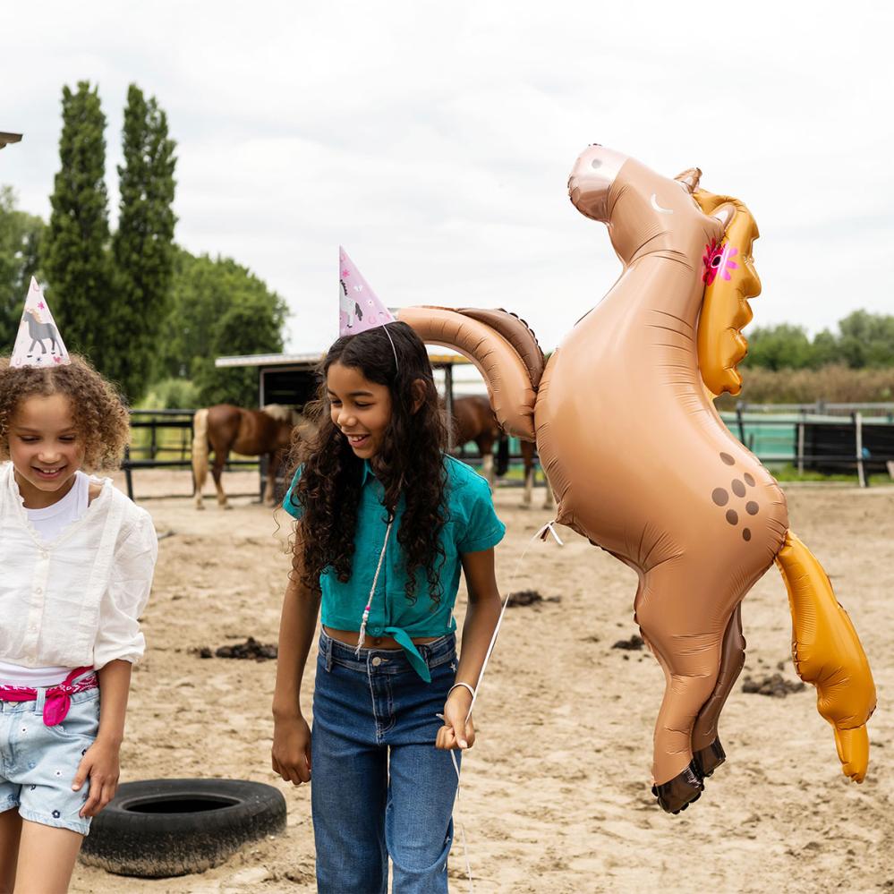 Som folieballon lader den en hest træde direkte ind i fantasien. Det bliver en legende dekoration, hvor en hest synes at galoppere gennem latteren. Til en fest med tema om heste føles stemningen straks lidt vildere.