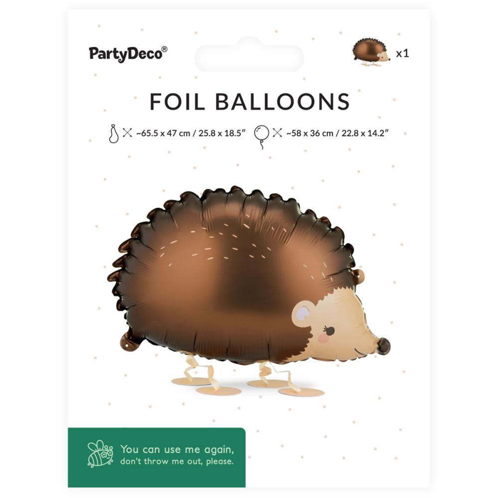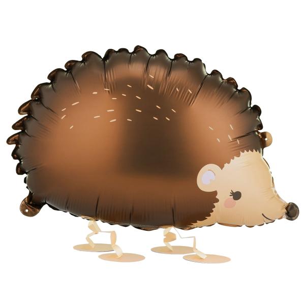 Folieballon Pindsvin Airwalker 58 x 36 cm omfatter en folieballon i form af et brunt og beige pindsvin med små fødder, der skaber en gående effekt, når den fyldes med helium. Ballonen kan også fyldes med luft og leveres med et sugerør til oppustning.