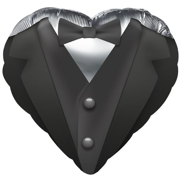 Folieballon Smoking Bryllup Sølv 45 cm er en folieballon med bryllupstema. Ballonen er formet som et sølvfarvet hjerte i smoking med en sort butterfly.