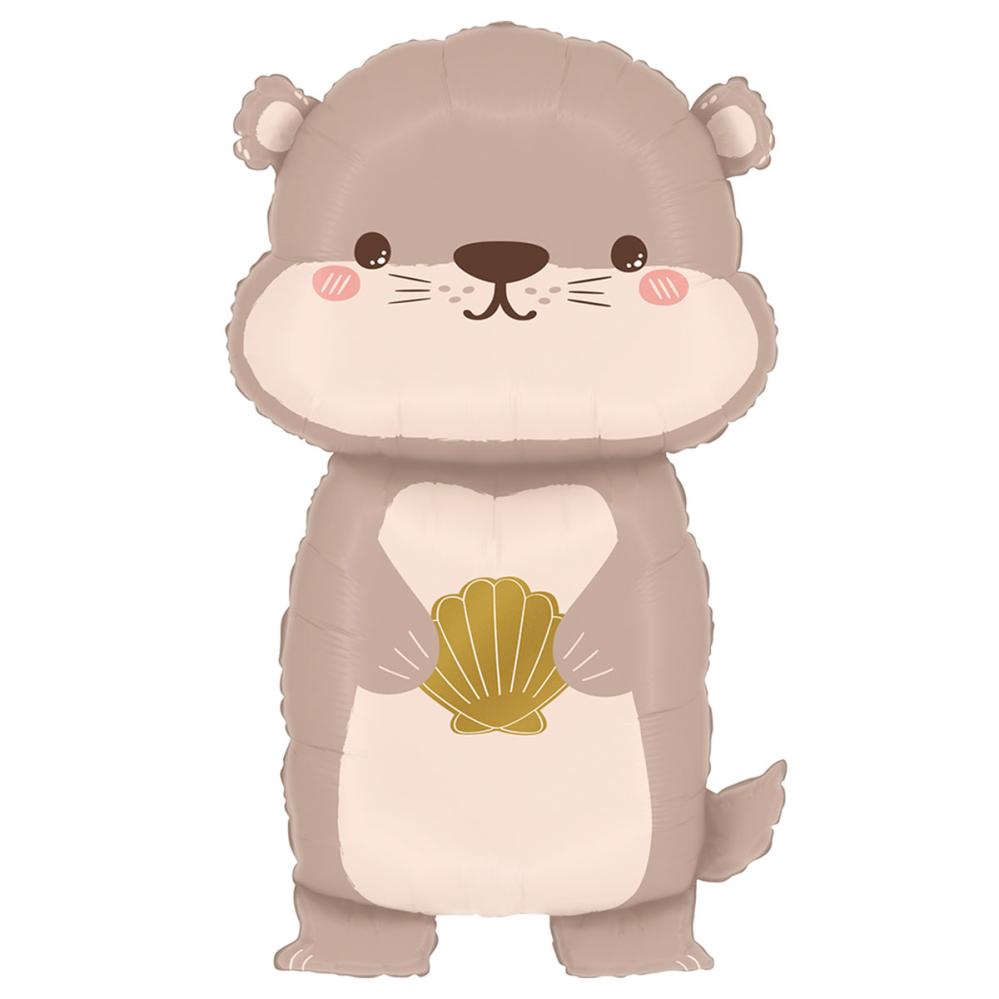 Folieballon Sød Havodder 40x68 cm omfatter en folieballon formet som en sød havodder med rødmossede kinder, der holder en gul konkylie.