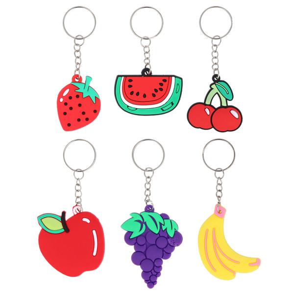 En frugtnøglering til børn gør nøgleringen sjovere med en frugt i blød plast, som fås i seks forskellige motiver. Sælges stykvis og usorteret – en perfekt nøglering med frugtmotiv, der bliver en spændende overraskelse.