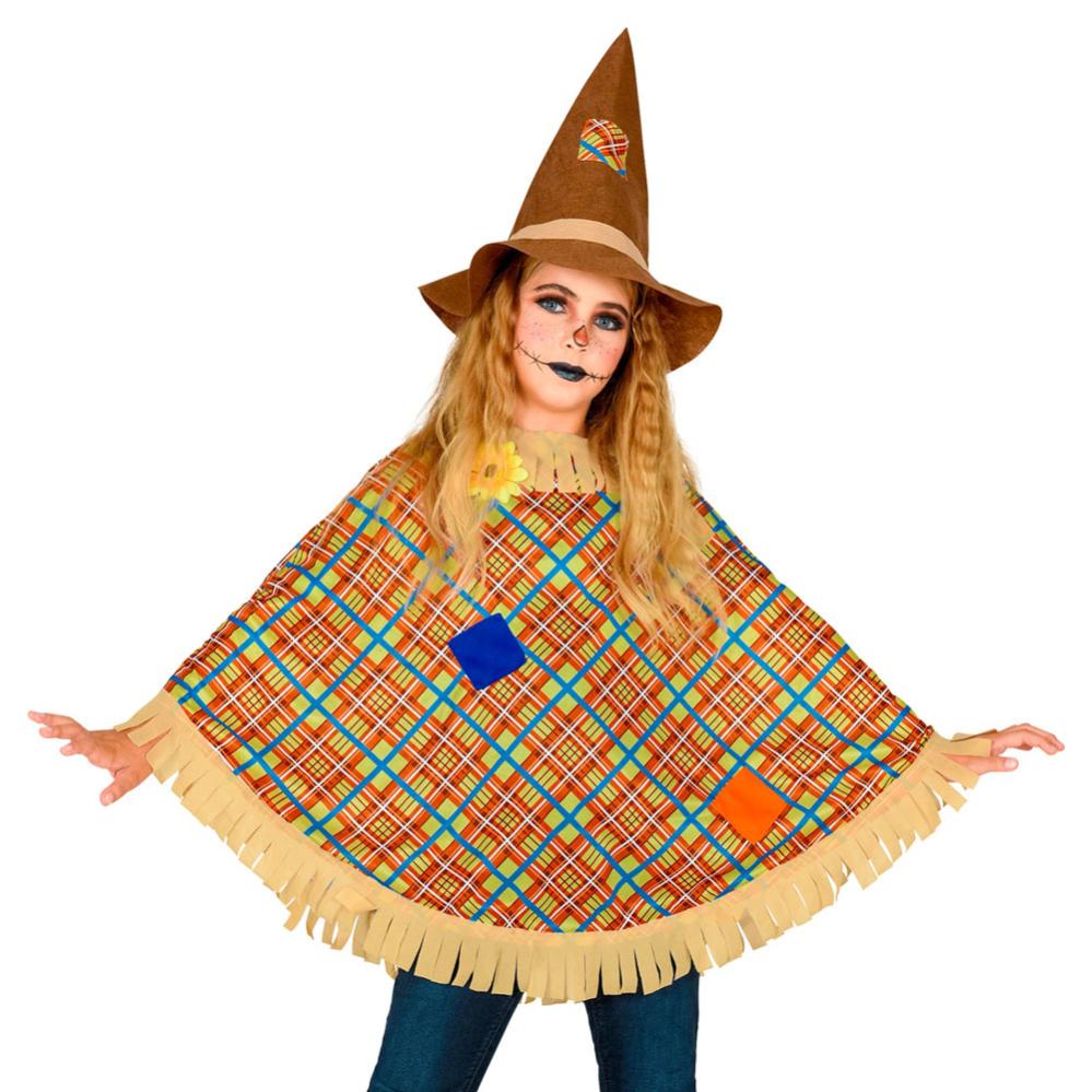 Skræm både fugle og mennesker med denne fine fugleskræmsel-kostume til børn. Superflot fugleskræmsel-kostume med poncho og hat, som bliver en perfekt udklædning til Halloween eller maskerade. For en ekstra god udklædning kan du også matche kostumet med en passende fugleskræmsel-makeup.